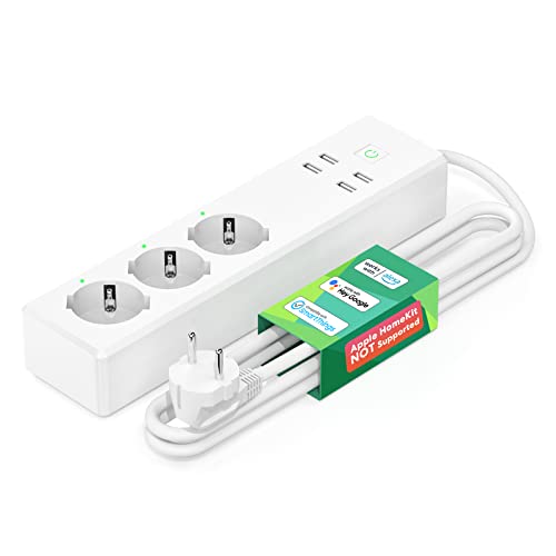 Dotada con tres enchufes y cuatro puertos de carga USB, la Regleta Smart WiFi se convierte en la solución perfecta para todas tus necesidades de energía. Todo en un solo aparato: un puerto USB-C PD de 30W, otro USB QC3.0 de 18W y dos puertos USB de 2,4 A.